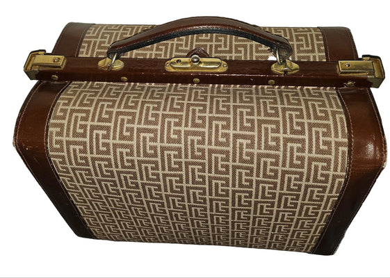 Step back in time with this extraordinary Balmain train case from the 1960s, a coveted treasure for vintage connoisseurs. Rendered in supple brown leather with a striking ivory subway motif, this piece embodies the sophisticated elegance of mid-century luxury travel. Preserved in mint condition, it showcases flawless craftsmanship and timeless design that transcends decades.