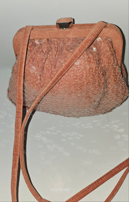 For sale is this Bottega Veneta Pink Beaded Two-Way Clamshell Pouch Crossbody which blends glamorous design with practical functionality. Adorned with delicate pink & crystal sequin beads and crafted to transform between a sleek pouch and a stylish crossbody, it adapts effortlessly to your lifestyle. Its compact shape keeps your essentials close while elevating your look with a touch of refined charm. Perfect for making a lasting impression, this accessory is a must-have for those who appreciate luxury and versatility.