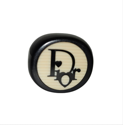 Dior Black & Ivory XL Round Logo Inlaid Ring