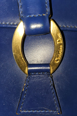 Dior cobalt blue leather satchel with gold engraved hardware.