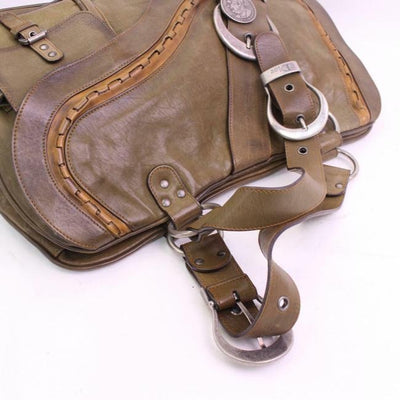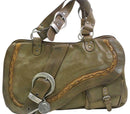 Amazing Dior Vintage, 'Gaucho' Satchel in Olive Leather with Copper Trim and Silver Hardware