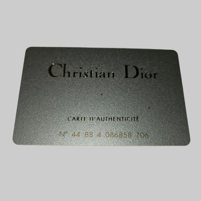 Inside, it has one large compartment with an interior zip and snap pockets. The lining is black fabric and it is very clean. There is a leather tag that reads 'Christian Dior, Paris, Made in Italy' with a serial number embossed on the back of the leather tag of #MA 0061. It will come with its authenticity card and the Dior strap, which are so hard to come by.