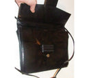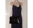 The bag is a rare, black, patent leather purse by Fendi that is probably from the late 1970's. It is a shoulder bag with a removable strap to become a large, clutch style made with black, patent leather. It has an envelope, snap style closure. The interior is in excellent condition. It is black leather interior has a zip close pocket. The perfect black patent leather purse that gives you two designer bags for the price of one!
