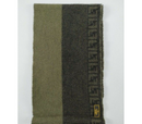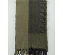 The scarf has the Fendi Zucca logo print and color block design in shades of brown and grey. The 100% wool scarf has 3" long fringe on both sides. There is a tag that read, 'Fendi, Cravatte, Made in Italy'. It is a classic style that could work for a man or a woman and looks a lot like the scarves in Fendi's new line!
