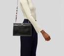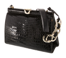 Black Glossy Crocodile Leather Purse w Unique Chain Strap