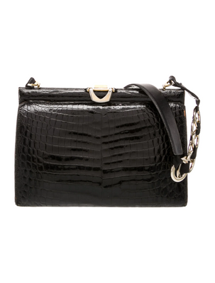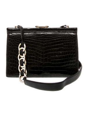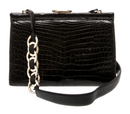 Gucci Black Glossy Crocodile Leather Purse w Unique Chain Strap
