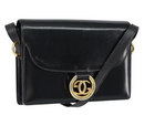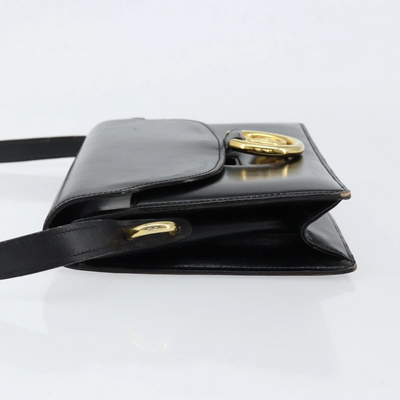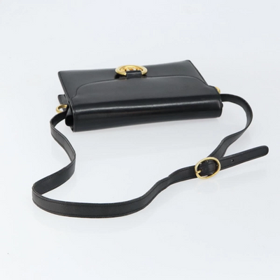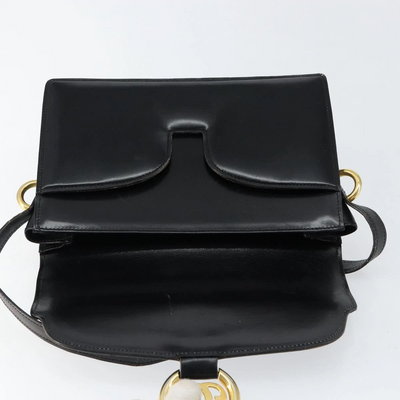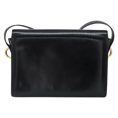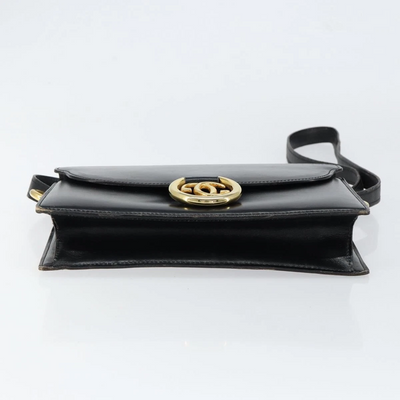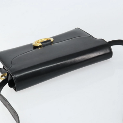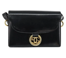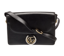 Black Leather Torchon Cross Body w Bold Gold GG Medallion