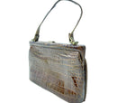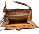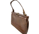 brown crocodile leather top handle purse