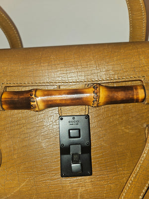 • For sale is an authentic, Gucci, brown textured leather, large, two strap, bamboo accent, bullet bag! One of Gucci's most desirable and classic purse designs with timeless style!