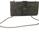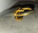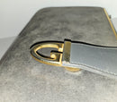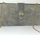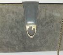 This is a fabulous, vintage, early GUCCI, supple leather, unique two- way style clutch or shoulder bag in a very 1960's mod style! The purse is constructed of buttery grey suede leather and the leather, flap snap closure has a bold gold G logo center accent! The purse has a matching collapsible/removable, heavy, gold rope link chain strap to allow it to be worn as a shoulder bag, too!