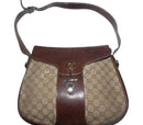 For sale is a vintage, Gucci, brown, large G canvas fabric & leather, envelope top, saddle style shoulder bag with gold tone horse bit equestrian accents! This mod, equestrian influenced purse from Gucci that will be the only brown purse you will need!
