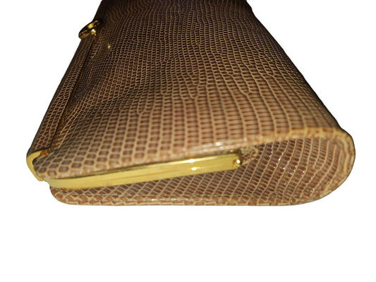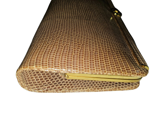 You will never need another tan or lizard clutch purse! This is a wonderful, year round, purse that could be dressed up or worn with jeans! It would make a great gift for someone else or for yourself.