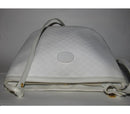 Gucci Vintage White Small G Logo Print Coated Canvas And White Leather Satchel