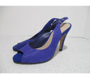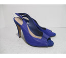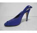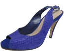 Stunning! KURT GEIGER - CARVELA Deep Purple Snakeskin Suede Pattern Peep Toe Slingbacks. 4.5" covered stiletto heels. 1/4" wide strap with buckle closure. Made in Brazil. Stamped Size 39, approx. US 8 - 8 1/2? Gorgeous purple violet color with silver hardware accents. All measurements are approximate. J11101