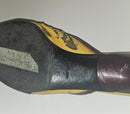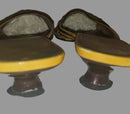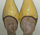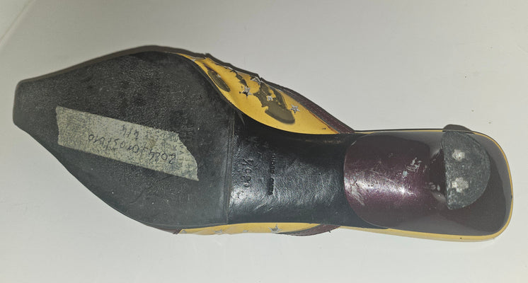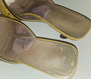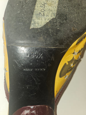 The kitten heel offers comfortable everyday wearability without sacrificing style—a signature of 90s luxury design. The color blocking combines warm earth tones with vibrant yellow for a look that feels both vintage and contemporary. Perfect for collectors of authentic Prada pieces or anyone seeking statement footwear with genuine designer heritage and distinctive character.