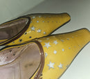 Prada kitten heel mules in yellow, brown, & dark red with star cut outs