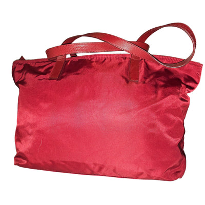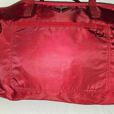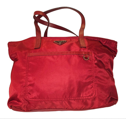 Prada Red Leather & Nylon XL Classic Tote Bag